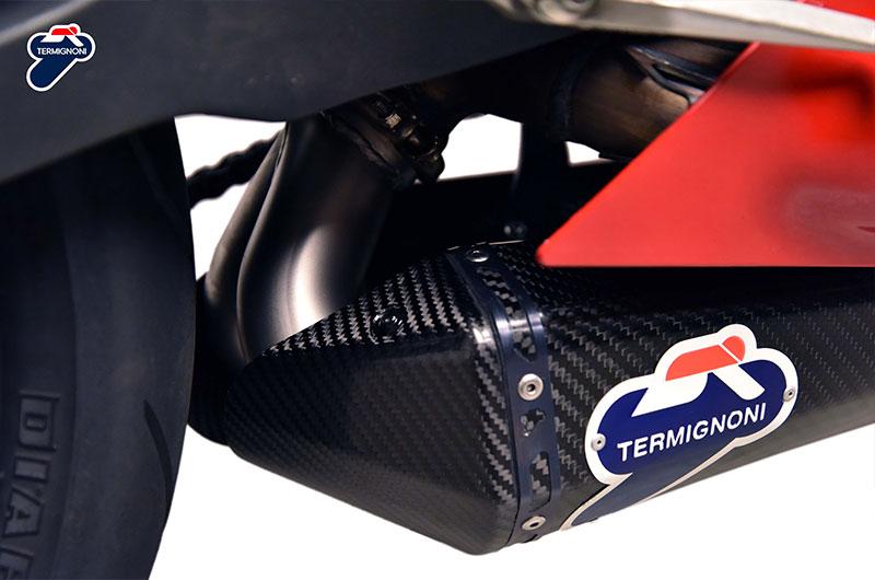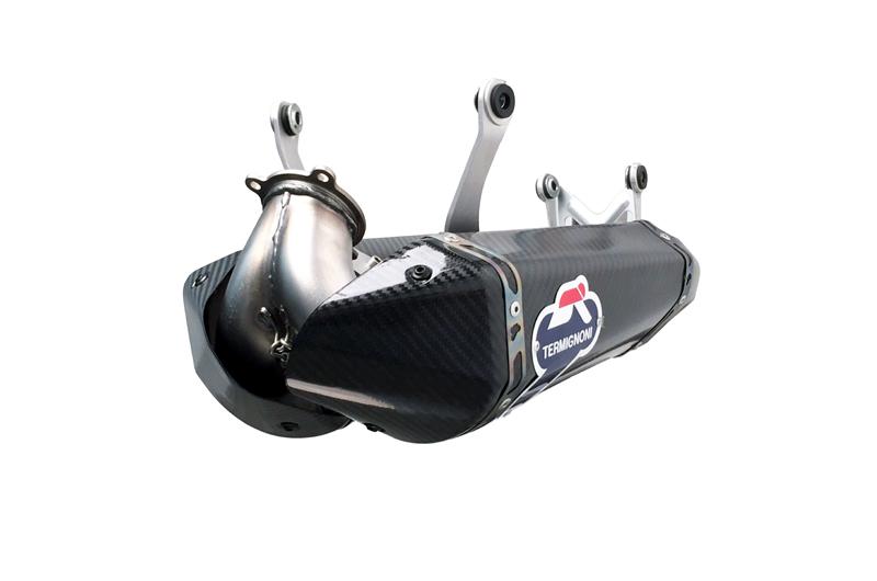 New silencers are made in carbon and titanium CUNB, the same used by Termignoni Reparto Corse team for racing exhausts.